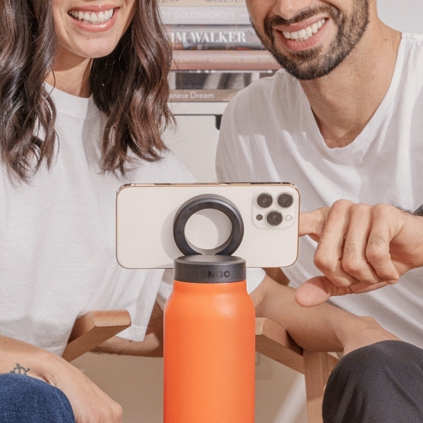 RINGO insulated water bottle is the hydration bottle for modern lifestyle that magnetically holds your phone. Taking advantage of MagSafe technology, RINGO cleverly transformed the bottle lid holder into a magnetic mount. With a 90-degree hinge and adjustable positioning for both portrait and landscape use, with or without water, Ringo™ ensures that your device is always at the perfect angle for that selfie, zoom call, or timer'ed group photo. Plus, the package comes with Magnetic Booster Ring that makes Ringo™ compatible with any device - including older iPhones, non-Apple phones, and even tablets like the iPad 12.9"! And of course, RINGO is designed with quality in mind over everything else - PRO Stainless Steel, BPA-Free, Leak-Proof, Toxin-free, holds temperature 24Hrs Cold and 12Hrs Hot, Dishwasher Safe, you name it, Ringo's got it.