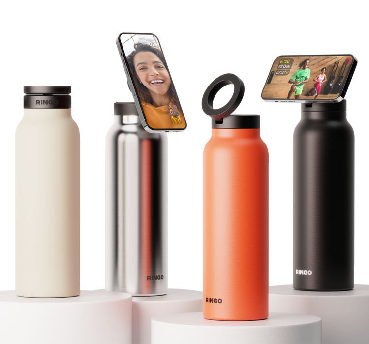 - PRACTICAL FOR DAILY USE: RINGO is a high-quality insulated water bottle with a magnetic mount that securely holds your phone. Enjoy the convenience of its all-in-one design that redefines multitasking. It’s perfect for traveling, filming or following workout and cooking videos, making video calls, GPS navigation, and is a great gift for any occasion – Mother’s Day, Birthdays, Graduation, and more!